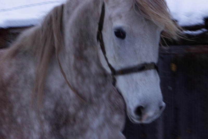 Позже, находясь в гостях доброго парня, хозяина этой лошади, я попросил нас познакомить. Меня с лошадью. Он легко согласился и ушёл, а через минуту из глубины двора на меня неслась та самая лошадь. Запланированное знакомство произошло так неожиданно, что я еле успел, не целясь, нажать на спуск затвора.